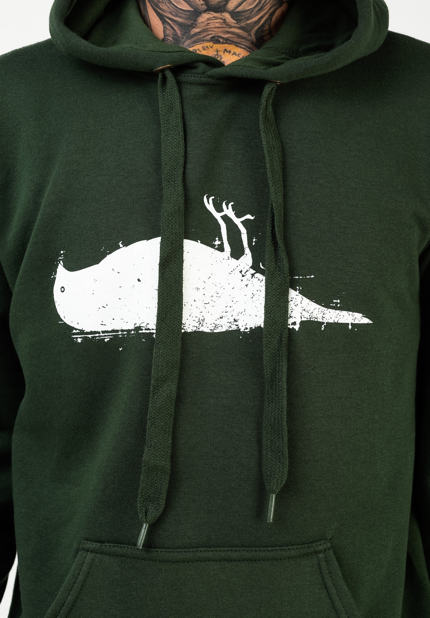 Le sweat à capuche Bird Hooded d'Atticus, un modèle de base classique et stylé. Dans ce cas la, il s'agit d'un petit oiseau mort imprimé sur la poitrine et d'autres caractéristiques typiques d'un sweat à capuche tau top, tels qu'un intérieur doux et confortable, une capuche à double épaisseur avec cordons et logo sur l'ourlet gauche, poche kangourou et bords côtes élastiques sur les extrémités de la taille et des manches.