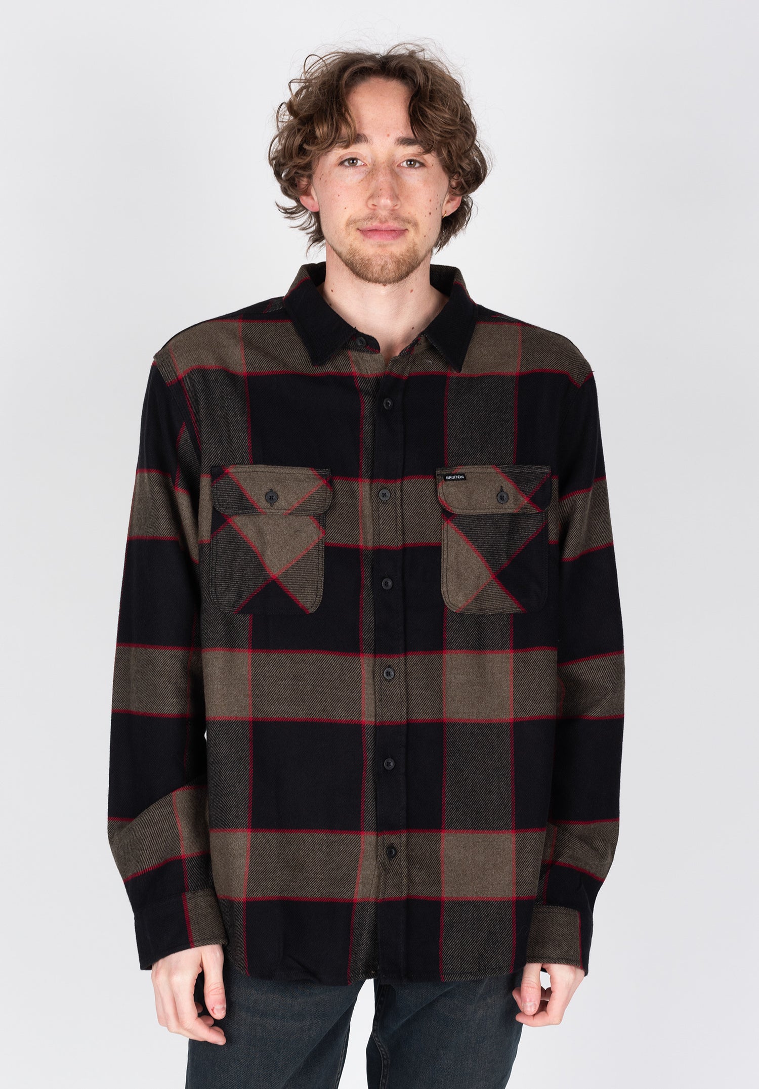 The Brixton Bowery Flannel offers a classic relaxed Regular Fit with a bold check pattern. Perfect shirt style!